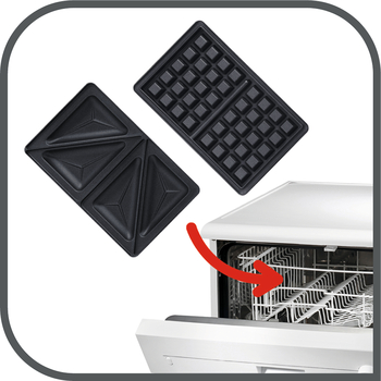 Odvojive ploče za vafle i trokutaste sedvič tostove.